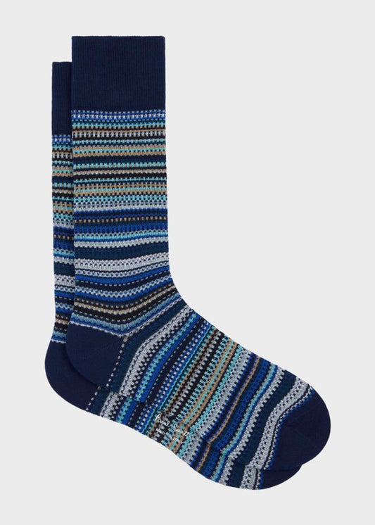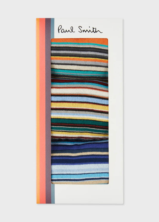 Paul Smith Navy Wool Multi Colour Stripe Scarf