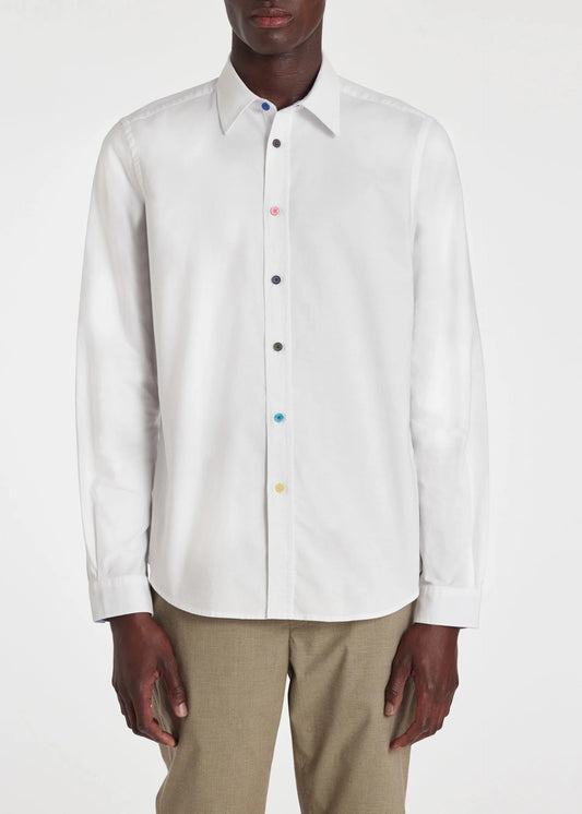 Paul Smith Tailored-Fit Light Pink Cotton Shirt with 'Sports Stripe' Buttons