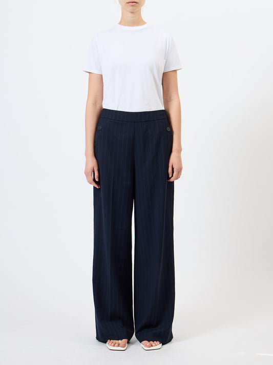 French Connection Alia Pinstripe Button Detail Wide Leg Trousers