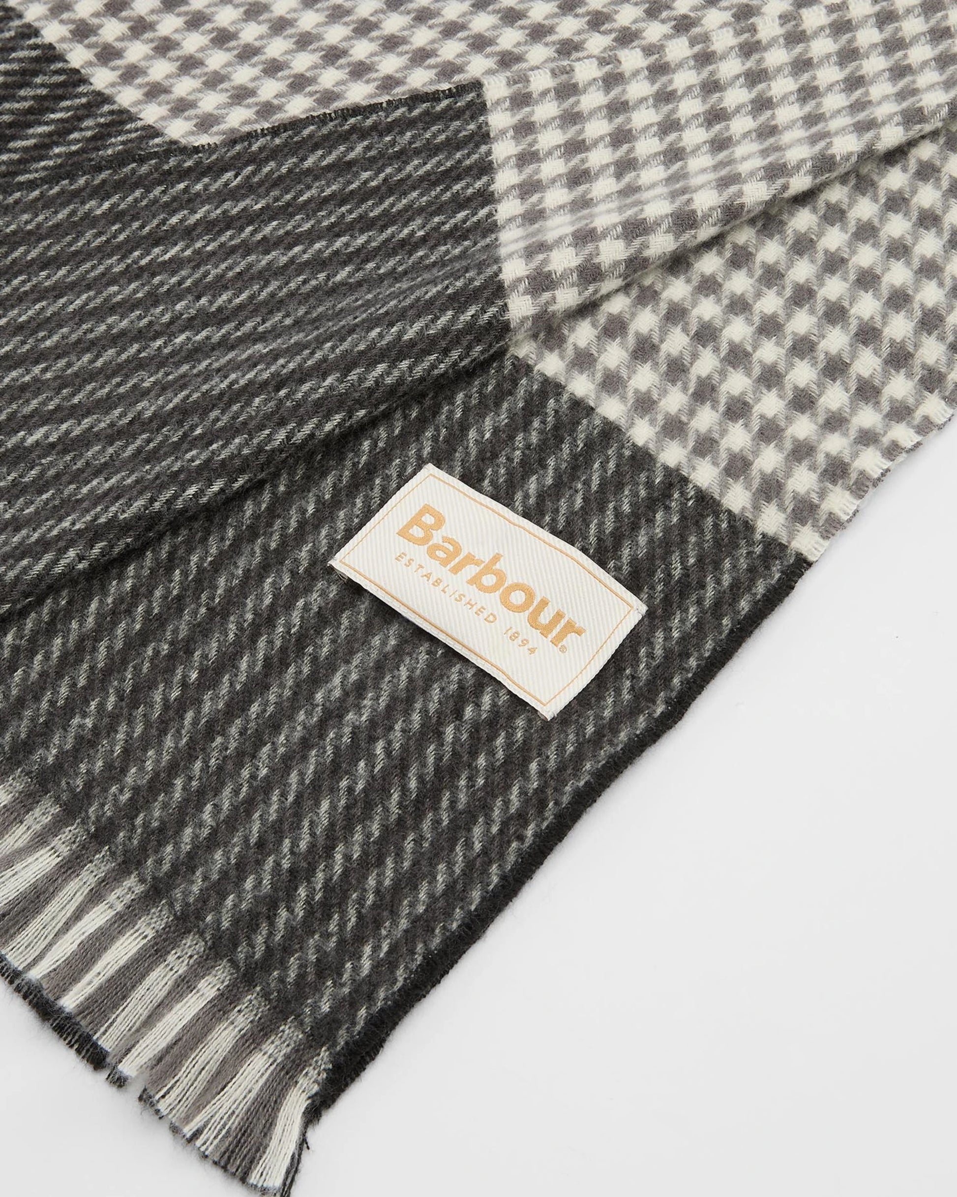 • The Barbour Melody Scarf is designed to provide unbeatable warmth in the colder months. It carries an oversized check and is finished with a fringed hem for a touch of texture.