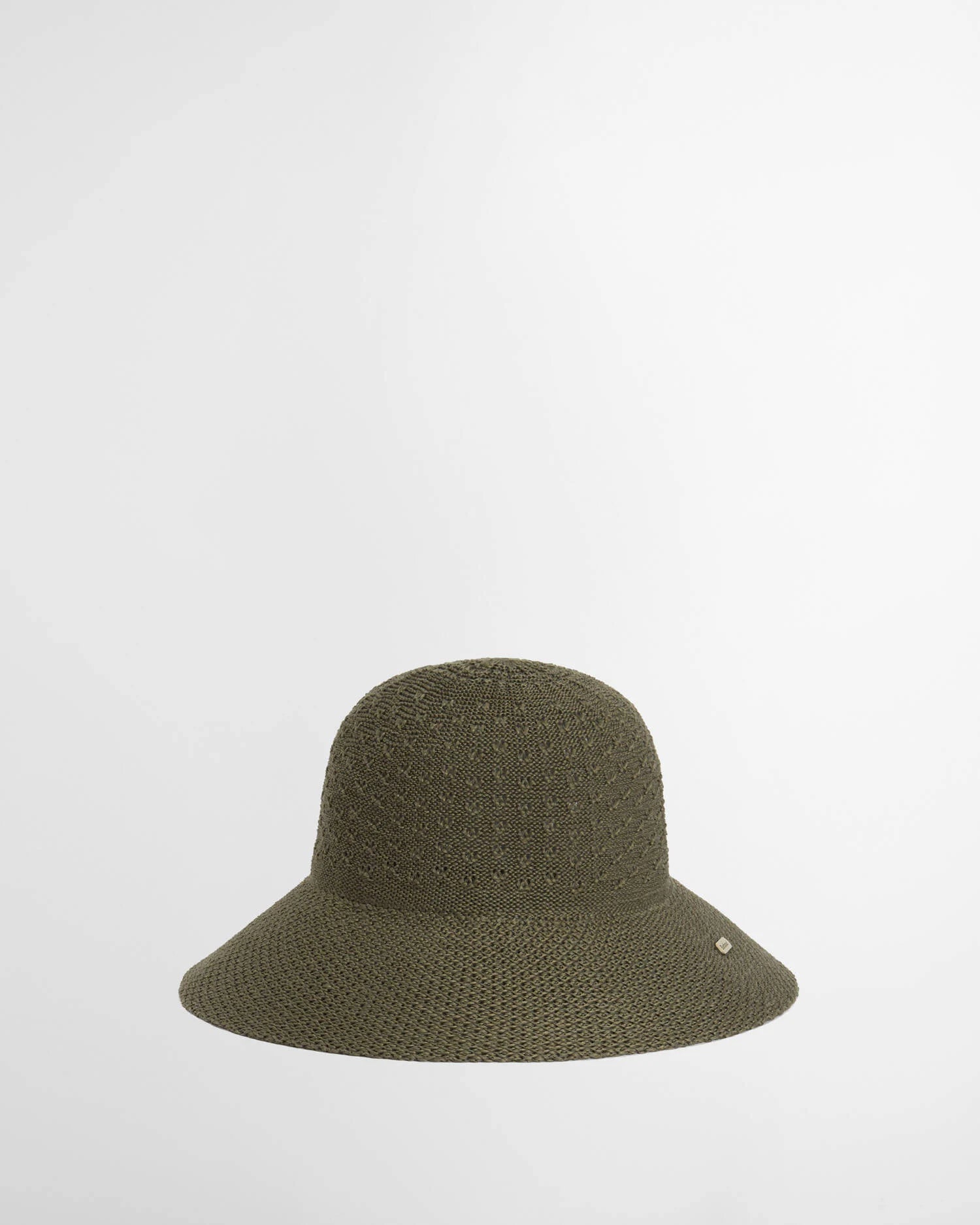 • The Barbour Zaria Sun Hat is a thermo-blocked summer hat crafted with a textured crochet-effect fabric for lightweight, breathable wear. Finished with internal Barbour logo tape and a branded metal plate on the wearer’s left side, it combines heritage-inspired detailing with sun-ready functionality, offering stylish protection for warm-weather adventures.