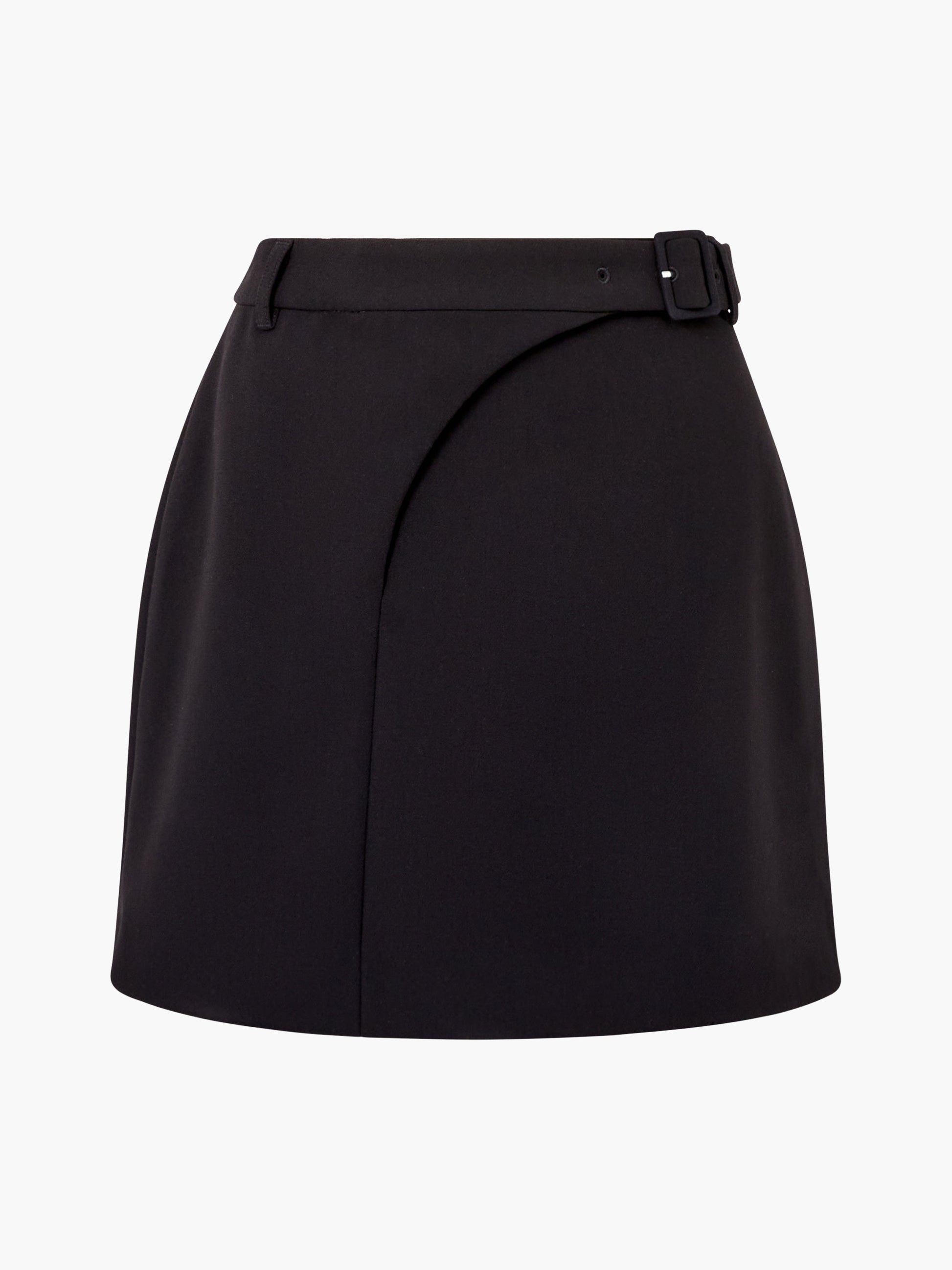 • This Azra Twill Mini Skirt is a sleek addition to your wardrobe. This black mini skirt features a sculptural curved overlay and statement belt for a refined yet edgy touch.