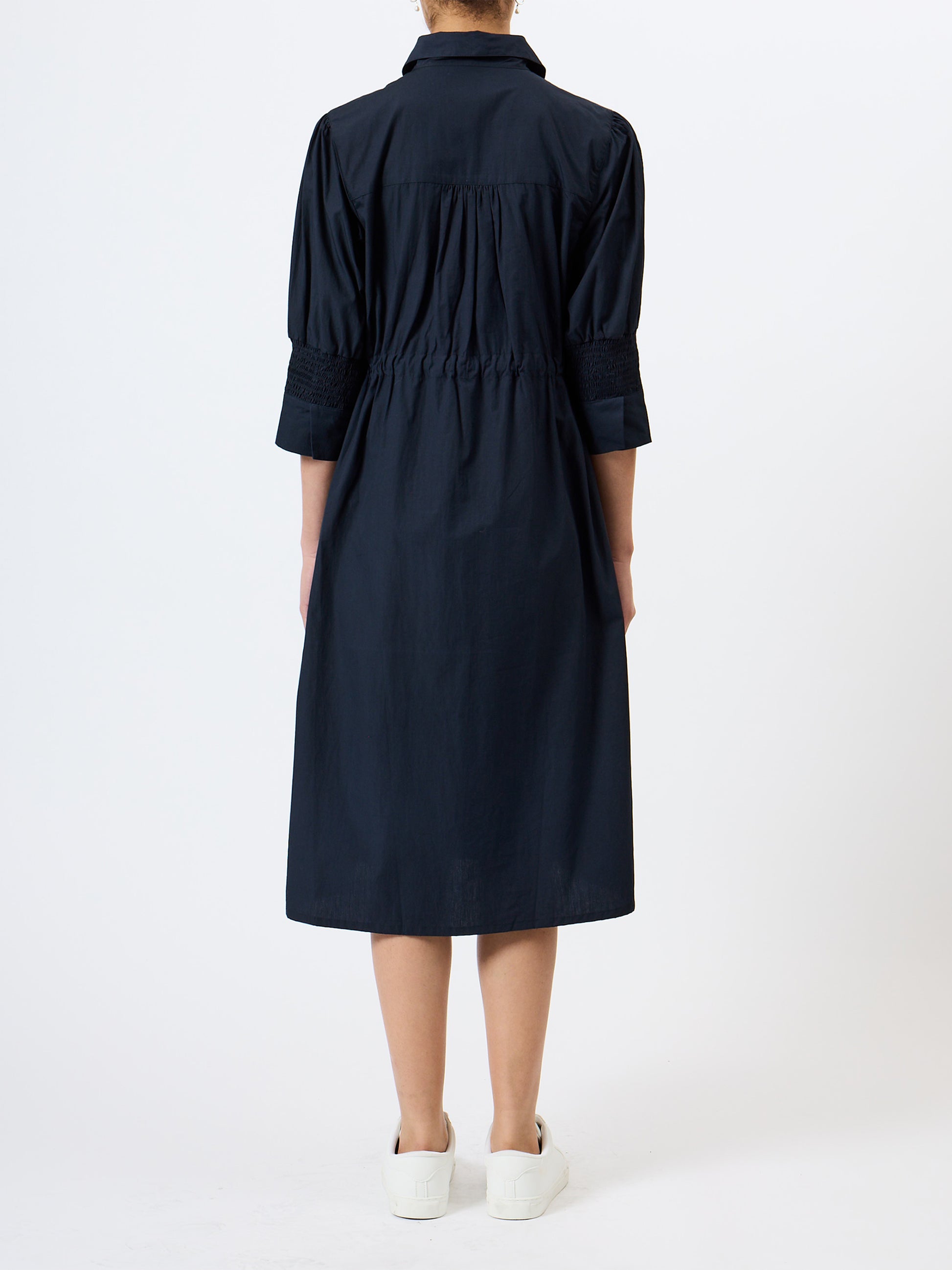 • Cinched and chic. In crisp cotton this Cambria Cotton Cinched Waist Shirt Dress pairs its classic collar and button through front with smocked sleeve detailing and a flattering drawstring waist.