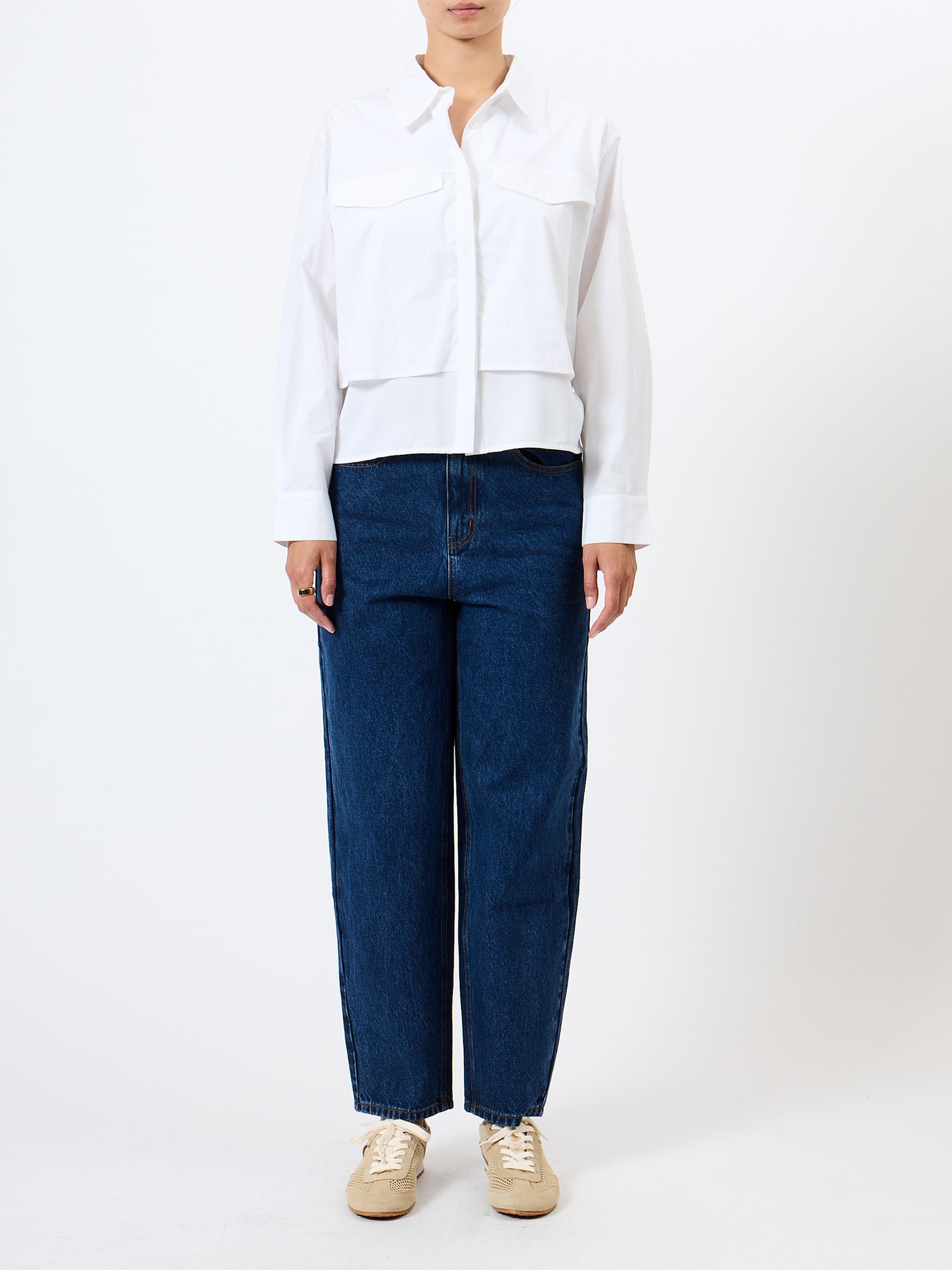 • This Cambria Milla Mix Layered Shirt guarantees a double take. This crisp cotton shirt features a layered front design complete with sharp collar and faux flap breast pockets.