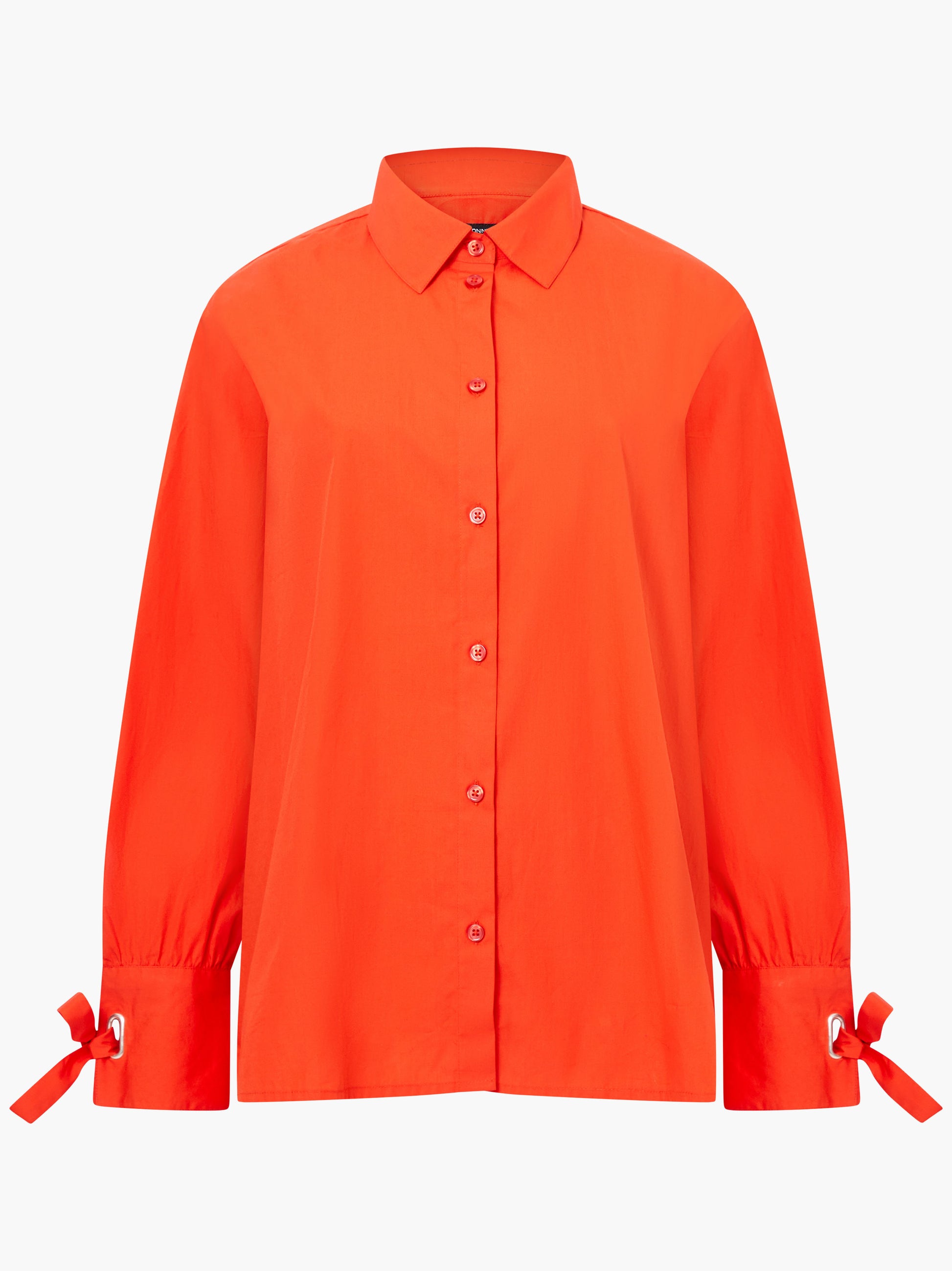 • Boldly introducing the Cambria Cotton Tie Up Bow Shirt. This crisp button down shirt features stylish tie details on its sleeves and back to add a modern touch to its relaxed silhouette.