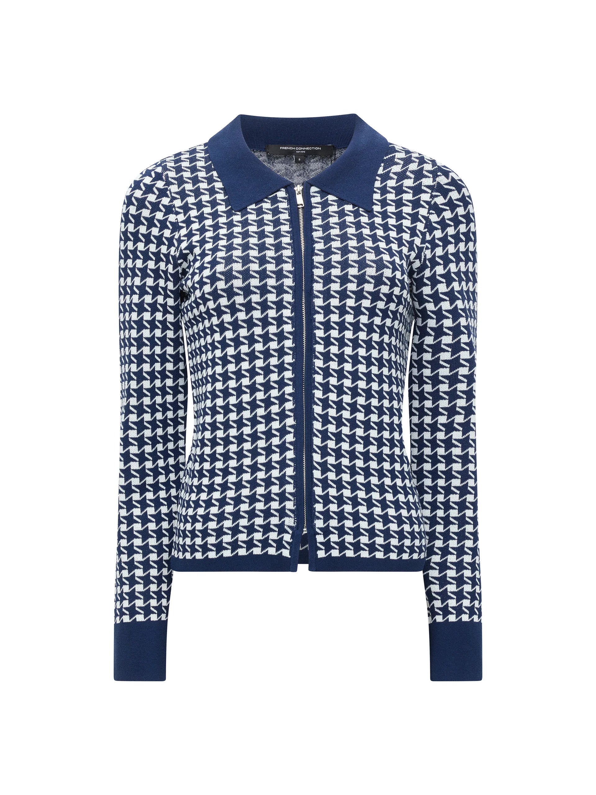 French Connection Gloria Jacquard Knit Zip Up Cardigan