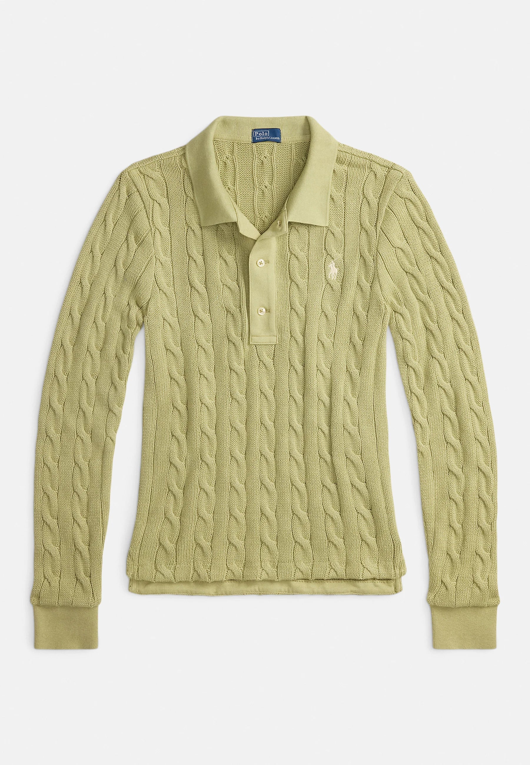 • This long-sleeve version of Ralph Lauren’s iconic Polo shirt is cable-knit with cotton and embroidered with the signature Pony at the chest.