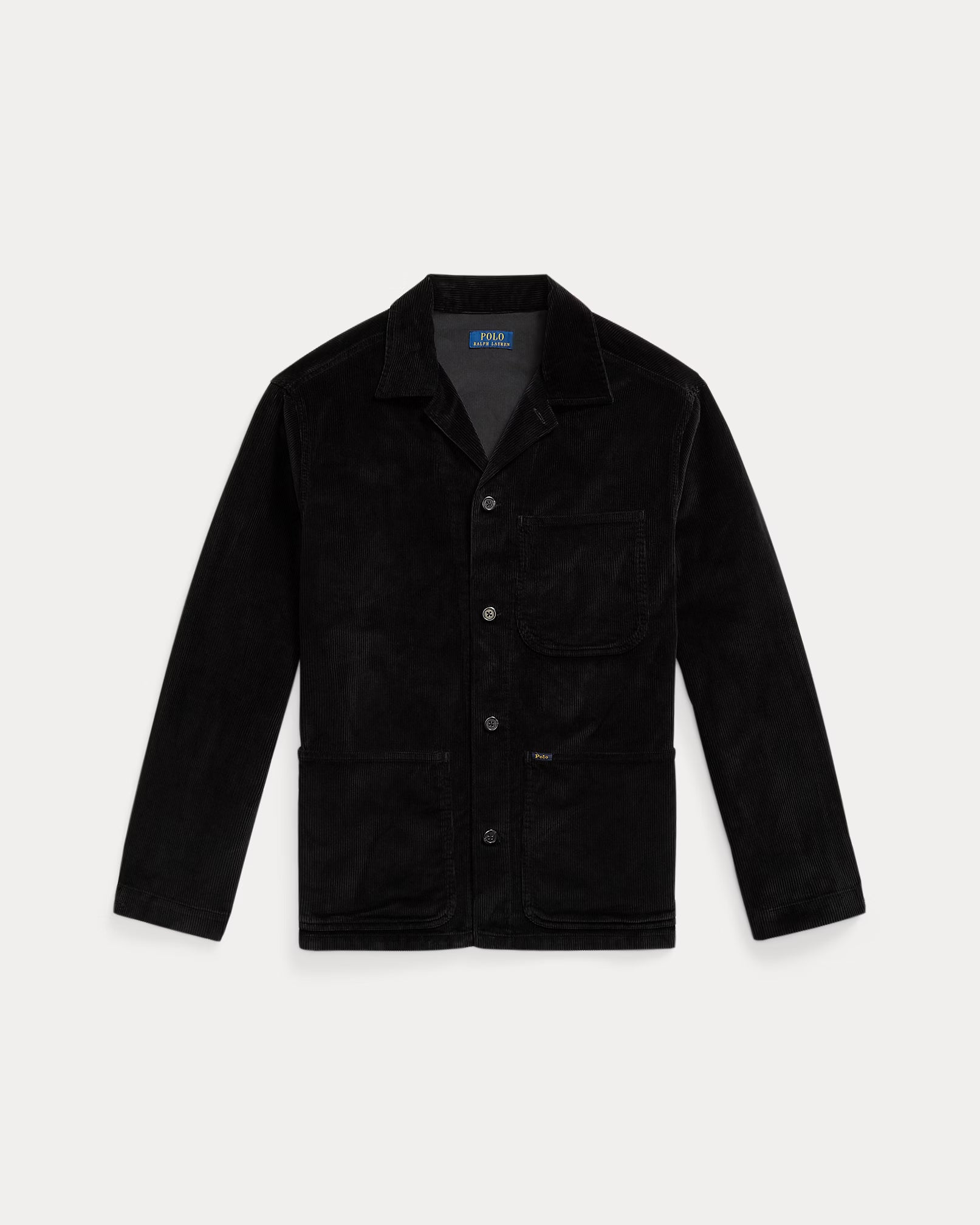 • Wide-wale corduroy enhances the rugged nature of this layer's workwear-inspired silhouette. Straight collar. Buttoned placket. Long sleeves with buttoned cuffs. Left chest patch pocket. Two front waist patch pockets. "Polo" label on the left waist pocket. Straight hem.