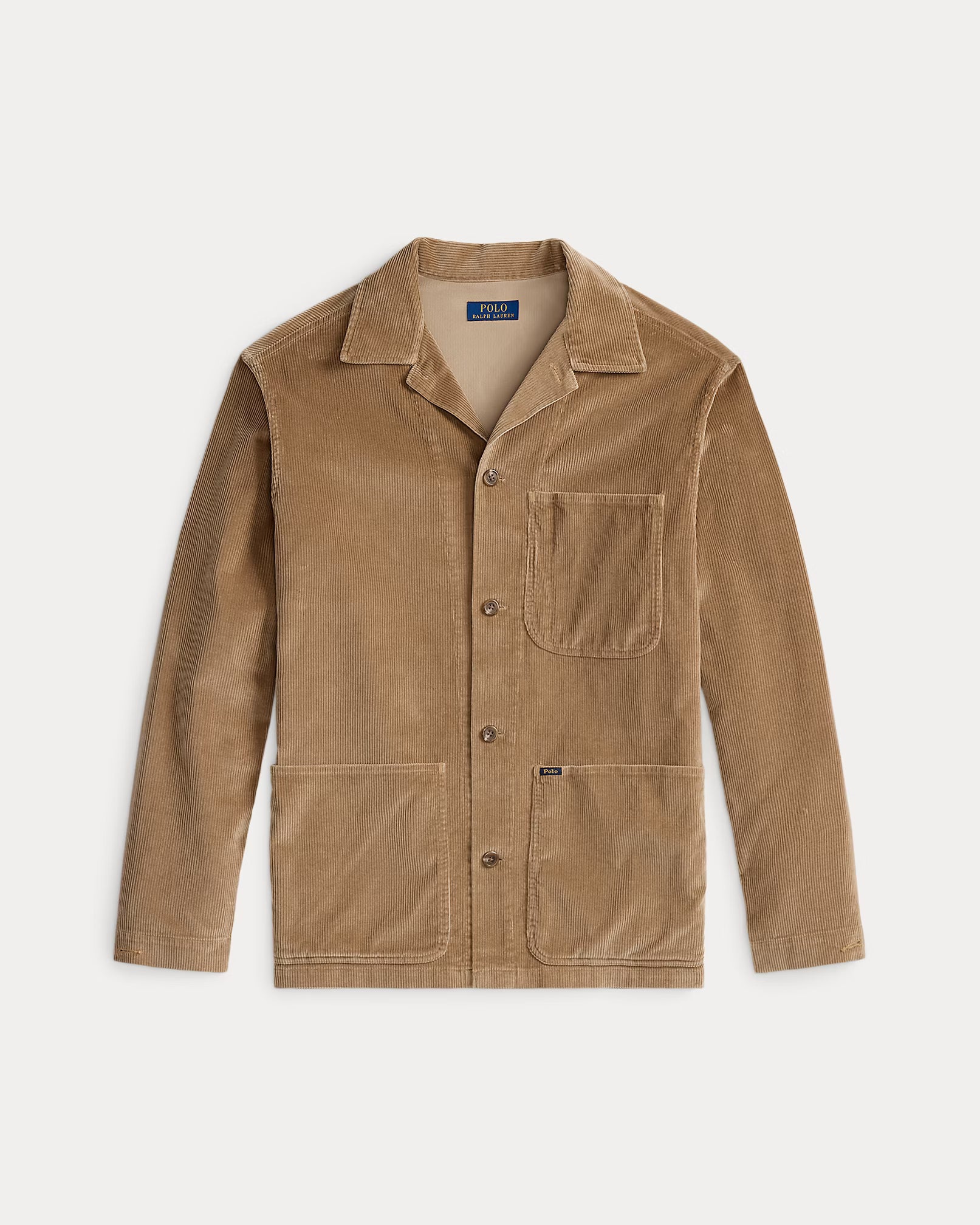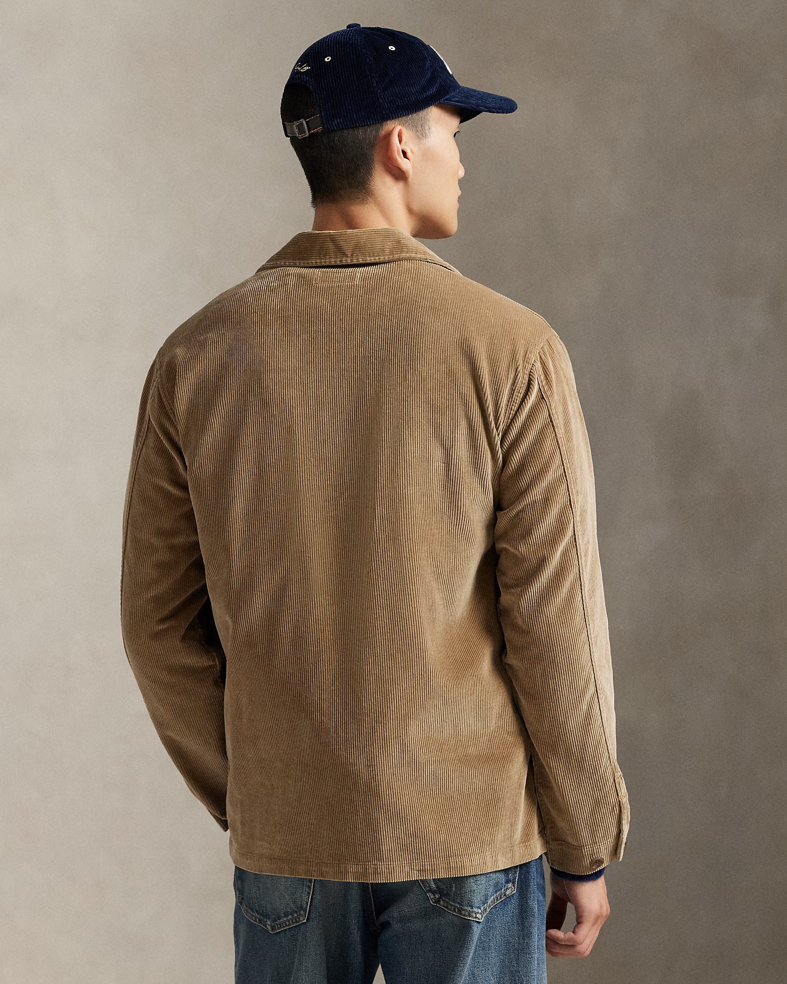 • Wide-wale corduroy enhances the rugged nature of this layer's workwear-inspired silhouette. Straight collar. Buttoned placket. Long sleeves with buttoned cuffs. Left chest patch pocket. Two front waist patch pockets. "Polo" label on the left waist pocket. Straight hem.