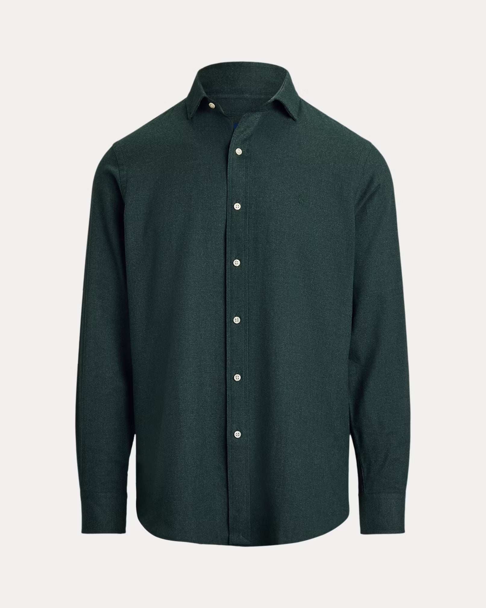 • This heathered shirt is crafted from a stretchy brushed twill fabric, which wicks away moisture so you can stay cool and comfortable throughout the day. Medium-spread collar. Buttoned placket. Long sleeves with buttoned barrel cuffs. A split pleated back yoke ensures smooth, contoured shoulders. Signature embroidered Pony on the left chest.