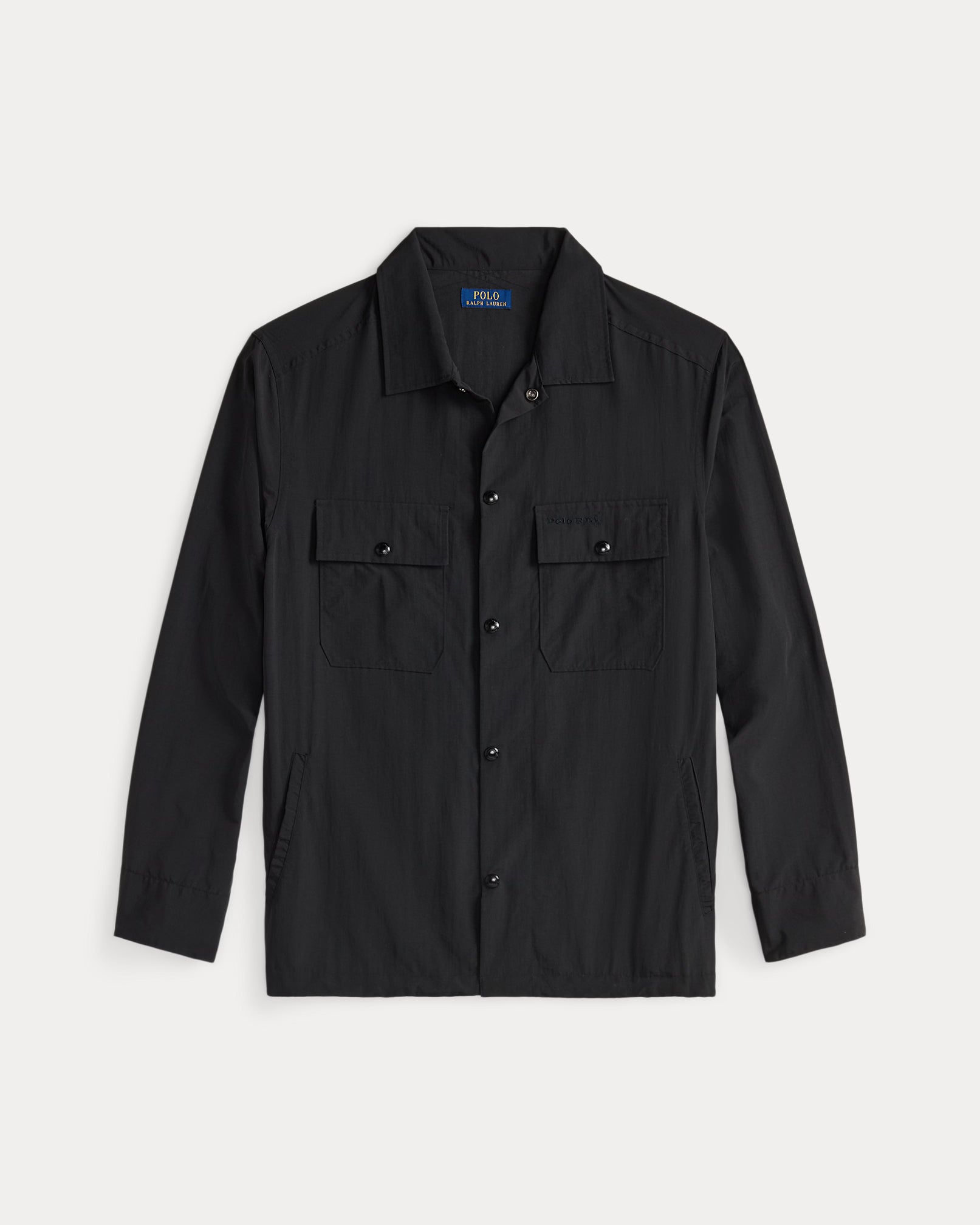 • Made from ultralightweight fabric, this overshirt combines a utilitarian-inspired silhouette with signature details like an embroidered logo and the iconic Pony. Straight collar. Snapped placket. Custom-developed metal snaps with a "Ralph Lauren" logo. Long sleeves with snapped barrel cuffs. Two chest snapped pockets. Two front waist angled pockets. Interior drawstring hem.